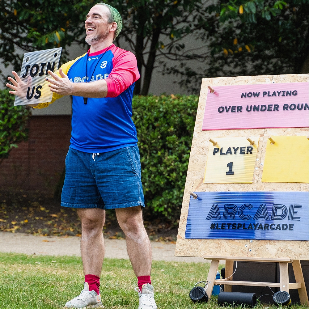 Each performance contains 6 unique, non-competitive games - each announced on our giant scoreboard!