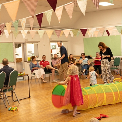 When you arrive at the front of the church, walk down the left hand side to the community hall at the back